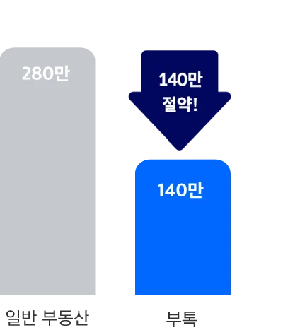 솔직히 중개수수료가 반값이라고 해서 서비스가 안 좋을거라고 생각했어요. 근데 지역 전문 중개사랑 1:1로 매칭이 되었고, 그 동안 경험했던 중개사들보다 친절했고 매물 리포트부터 모든 계약과정을 꼼꼼하게 관리해주니까 좋더라구요. 수수료가 반값인데 밀착 관리를 받는 느낌? 부톡을 선택하지 않을 이유가 하나도 없어요.